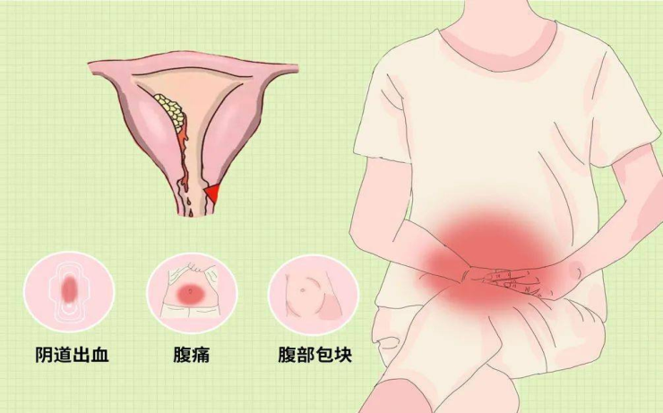 (1)异常子宫出血:绝经后阴道出血为绝经后子宫内膜癌病人的主要症状,少数早期子宫内膜癌可能无任何症状, 临床上难以发现,90%以上的病人有阴道出血症状。尚未绝经者可表现为经量增多、经期延长或月经紊乱。