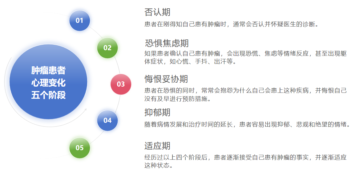 肿瘤患者的心理变化通常经历以下五个阶段: