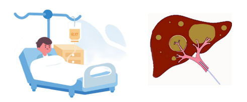 和人体正常肝组织相比,肝癌的血液供应90%以上来自肝动脉供血。因此将导管插入肝动脉,向肿瘤供血动脉内注入栓塞剂及化疗药物,让栓塞剂堵塞肿瘤血管,使肿瘤缺血、缺氧而被“饿死”;化疗药物直接注入肿瘤组织或肿瘤床,起到直接杀伤肿瘤细胞的作用,最终使肿瘤坏死而达到治疗目的。