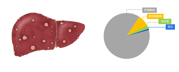 原发性肝癌是在肝组织内形成的癌症,是我国乃至世界上最常见、最具有危害性的恶性肿瘤之一。根据癌细胞的类型不同,肝癌的类型也不同,主要包括肝细胞癌、肝内胆管癌和混合型肝细胞癌-胆管细胞癌三种,肝细胞癌是肝癌最常见的类型,发生率占85%-90%。