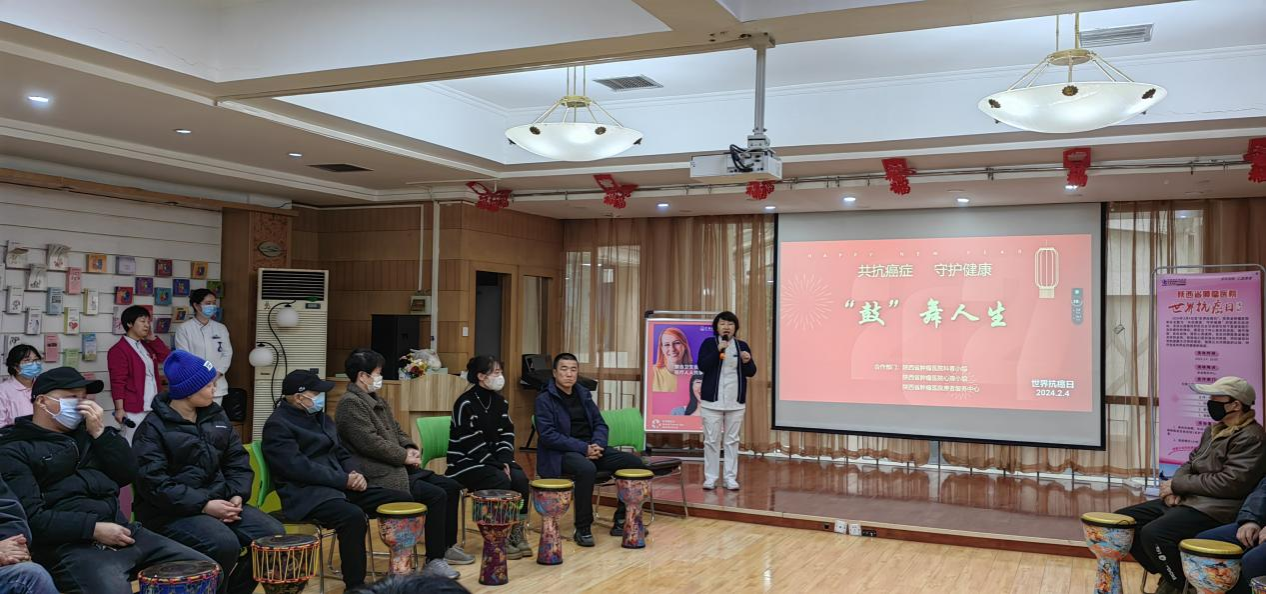 护理部举办主题为“共抗癌症,守护健康”医患互动活动,活动以鼓圈音乐坊的形式进行,在引导师引导下通过打击乐器的节奏和律动,使患友通过敲击非洲鼓发出的音乐,缓解身心压力,释放内心情绪,保持良好的心理状态,提升抗击癌症的自信,更好地应对疾病,并将饱含全院医护人员真挚祝福的春联送给每一位患友,祝福大家新年快乐,顺遂安康。