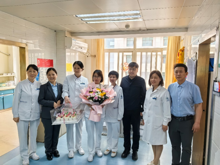 5月11日上午,党委书记李杨、院长张一力携班子成员,带领行政职能部门相关负责人深入临床科室,为奋战在临床一线岗位的护士们送去鲜花、蛋糕和节日的祝福。