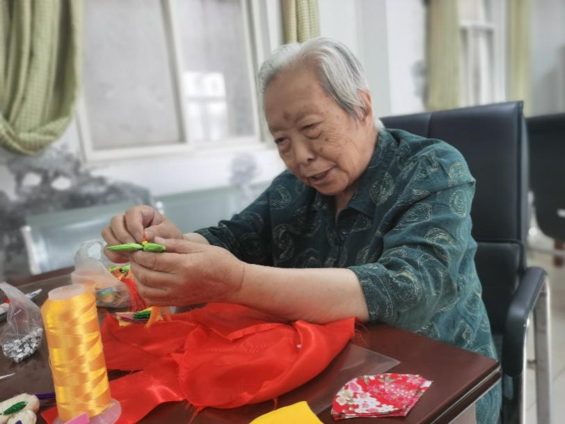 (原内科病区主任,92岁的 杜经农老师 ,正在制作香包。)