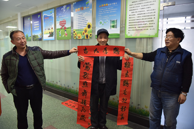 贴春联是中华民族几千年的传统。今天院工会、患者服务中心联合素股 杏林书院的书法爱好者在患者服务中心为患者及素股职工赠送他们现场书写的对联。吴古生主任...
