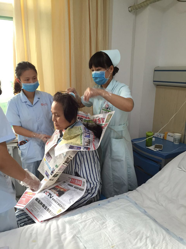 为患者免费理发(妇瘤三病区 杨娟摄)