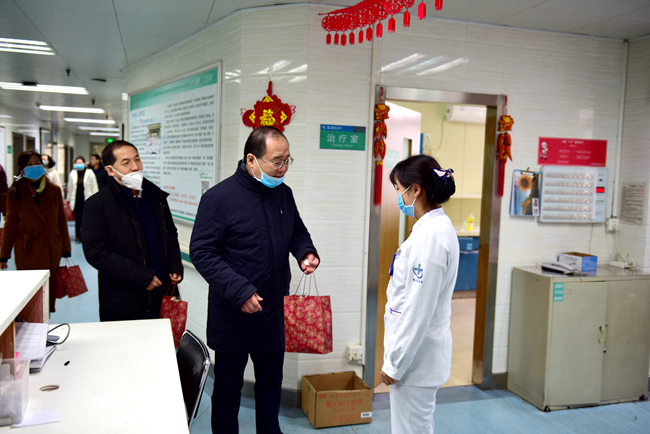 春节前夕,院领导班子看望离休干部、老领导、患病职工,为大家送去慰问金、春联,祝福老同志新春快乐!长寿安康! 张院长为离休干部送去节日祝福! 95岁高龄离休...