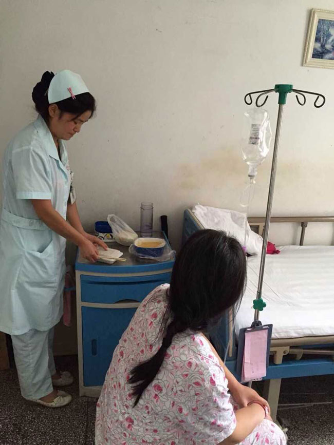 细微之处见真情:乳腺一科护士帮助无陪人的患者买晚饭。 (乳腺二病区 杨敏摄)