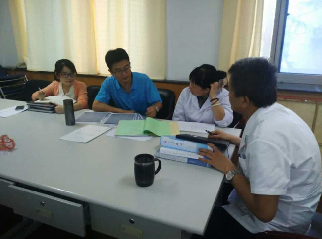 质控科张主任到乳腺三检查GCP工作,和张锋主任交流工作。(乳腺三病区 丁燕妮摄)