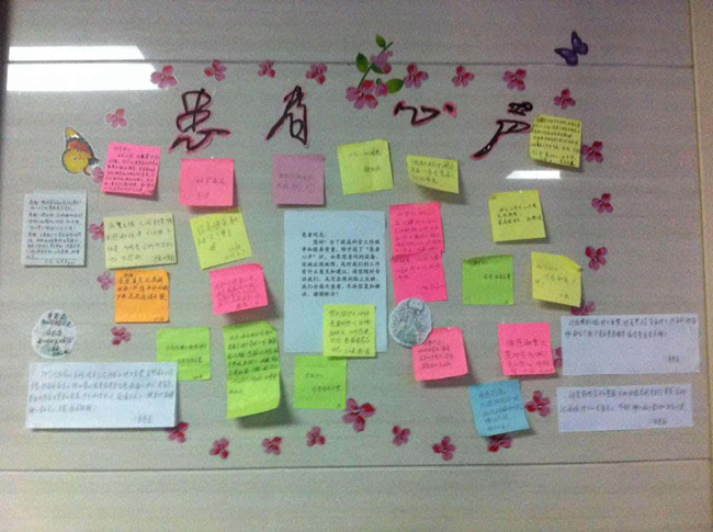患者心声__放疗一病区2015年优质护理小措施之一,为医患沟通提供了小平台,让患者把不方便当面说的话贴上去,解决了很多实际问题。 (放疗一病区 杨志华摄)
