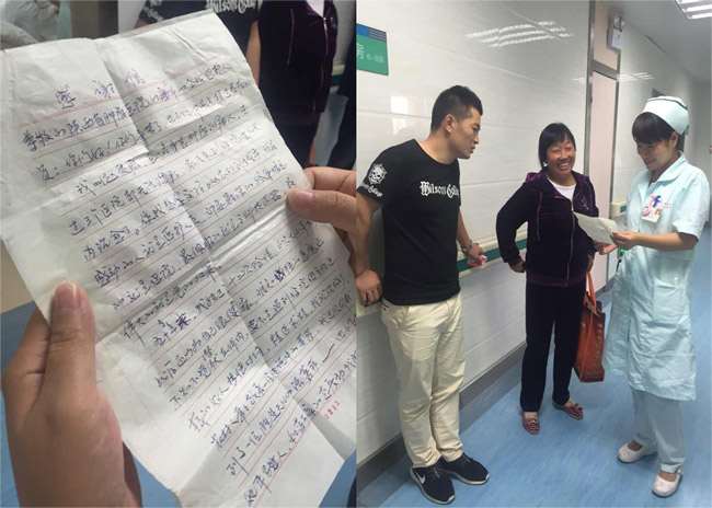 字里行间吐露患者肺腑之言,无私奉献共建护患和谐桥梁。(妇瘤二科 张秦豫摄)