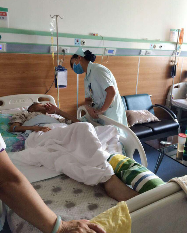 廖子君主任亲自为患者进行腹腔灌注(内一科 张彧摄)
