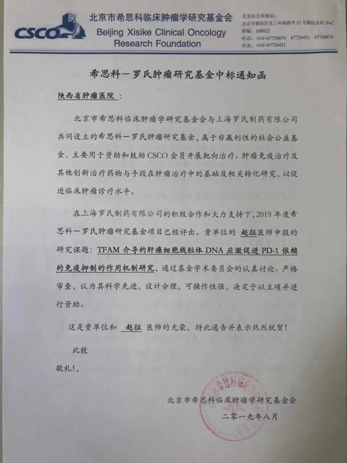 9月5日,2019年度CSCO希思科-罗氏肿瘤研究基金支持项目名单正式出炉。素股 肿瘤内科病院赵征主任医师团队申报的研究项目《TFAM介导的肝癌细胞线粒体DNA应激促...