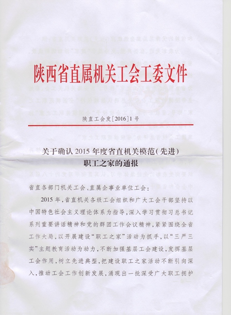 2015年度素股 工会被评为省直机关“先进职工之家”